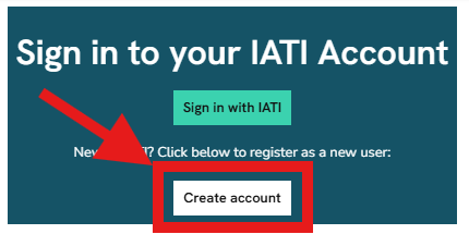 To register with IATI, click “Create account”, then “Register”, on the IATI Account homepage: