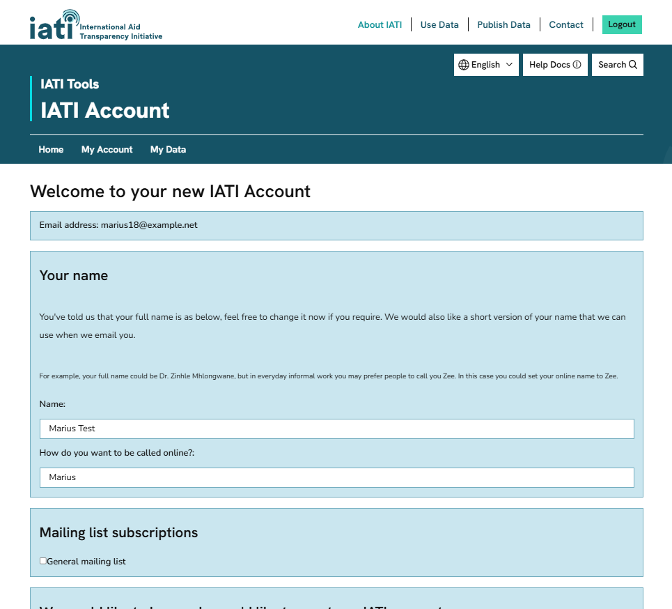 After signing in to IATI Account for the first time, you will be prompted to complete an onboarding survey. Information collected here will help us signpost you to the most relevant tools and services.